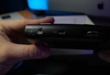 Экран устройства хоть и небольшой, но достаточно яркий и выводит всю необходимую информацию. Там есть часы, стрелка цифрового компаса и текущий режим работы, а в движении еще и скорость движения автомобиля, по данным сигнала GPS.