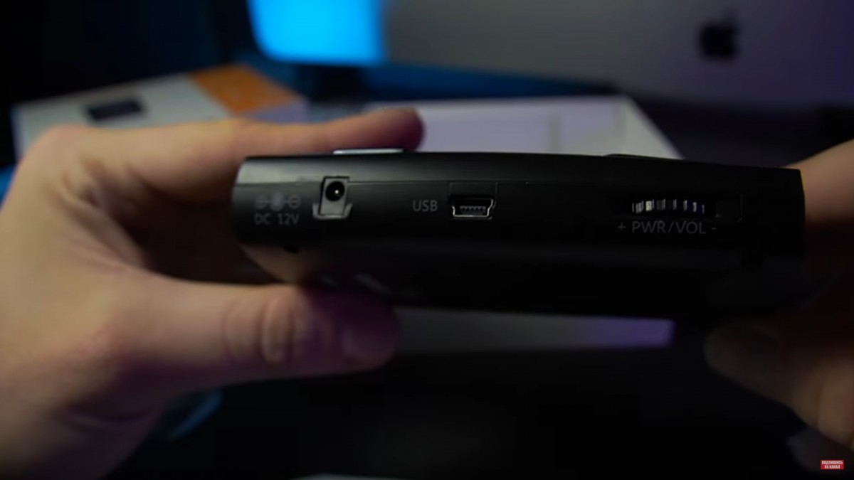 Гнездо питания и регулировка громкости оповещения на левом торце.